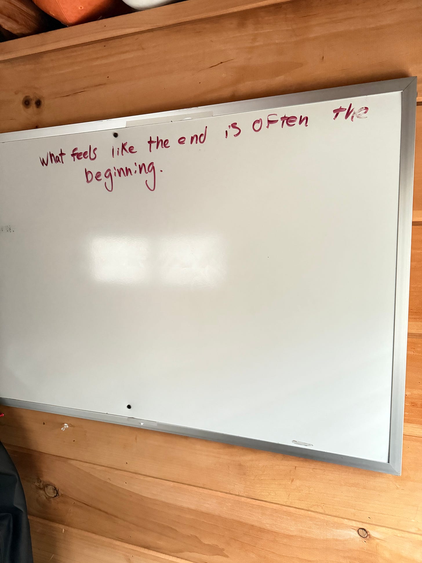 It’s like walking into our cabin for the first time. It’s tiny — maybe the size of a small New York apartment — but full of charm. And right there, on a little dry erase board by the door, someone had written: